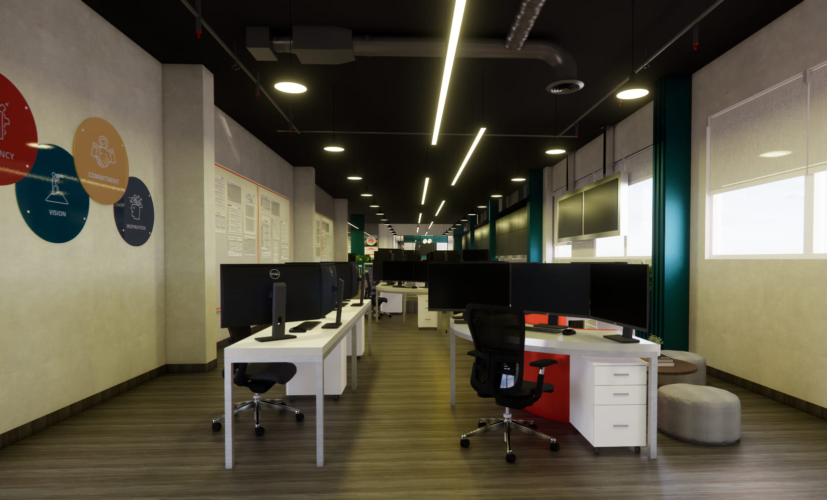 Este proyecto de remodelación interior surge de la necesidad de adaptar los espacios existentes a nuevas dinámicas de trabajo. A lo largo de la intervención, se reorganizaron zonas operativas clave, priorizando una circulación más fluida y una experiencia laboral más confortable. La incorporación de mobiliario funcional, junto con una iluminación bien resuelta y una materialidad sobria, aporta una mayor sensación de apertura y orden. Además, se trabajó con una paleta cromática vinculada a la identidad de la empresa, lo que refuerza su carácter institucional y genera un entorno coherente, estimulante y alineado con su cultura organizacional.